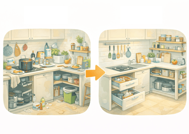Cocinar en un espacio reducido puede ser estresante si no tienes cada utensilio en su lugar. El reto de organizar una cocina pequeña no es solo guardar cosas, sino mantener la encimera despejada para poder trabajar. Cuando el espacio escasea, la creatividad y el orden estratégico se convierten en tus mejores herramientas.